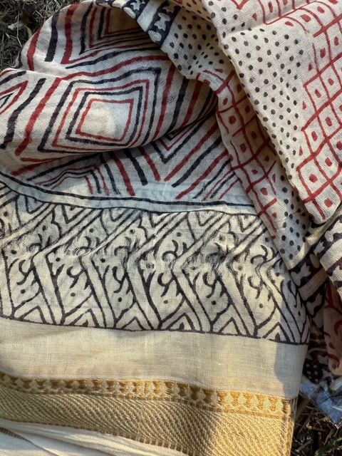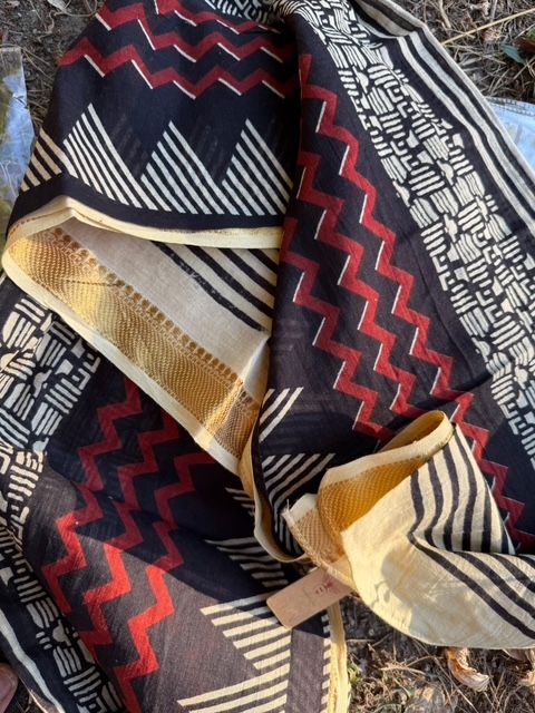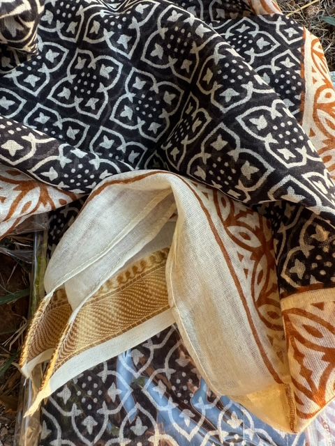 PAREO IN LEGGERO COTONE STAMPATO CON BORDATURA DORATA.