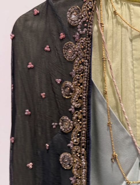 Stola in chiffon ricamato proveniente da una collezione privata di pezzi unici vintage indiani. Misure 88cm per 186 cm.