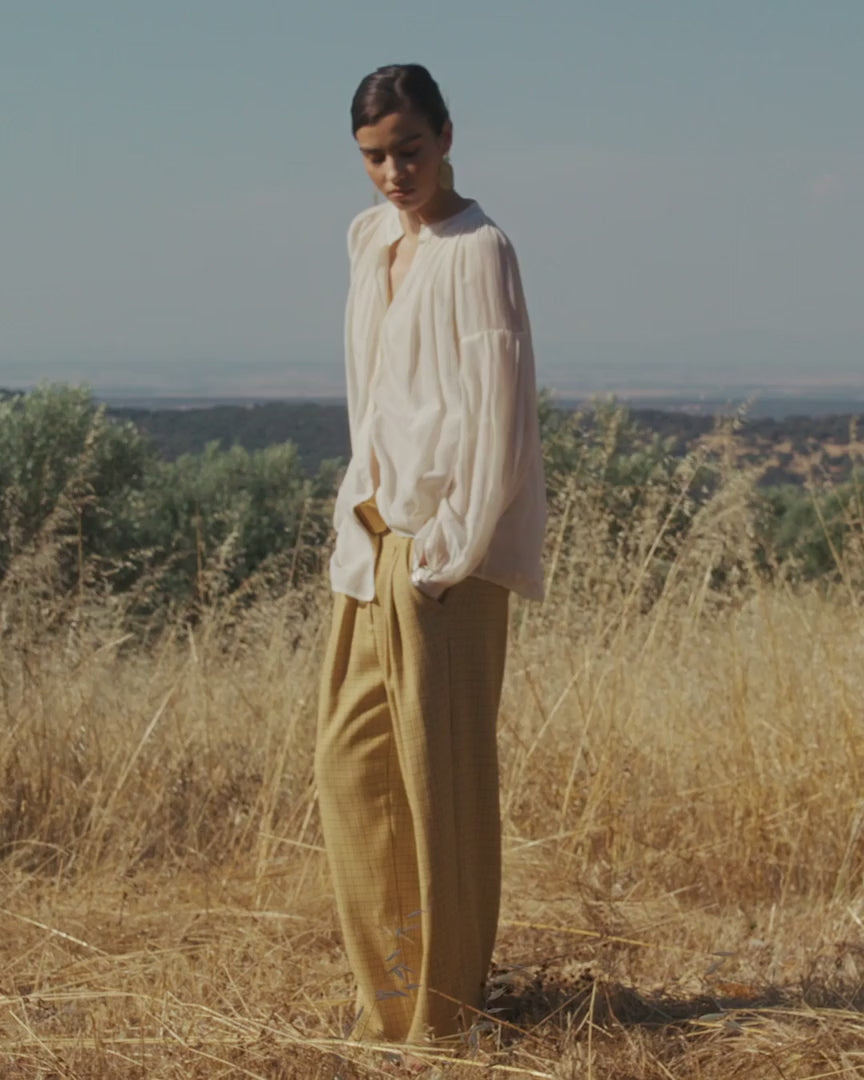 Questa camicia lunga in cotone doppio tinto a pigmento rivela una delicata tonalità avorio, resa unica da un processo di tintura artigianale.
