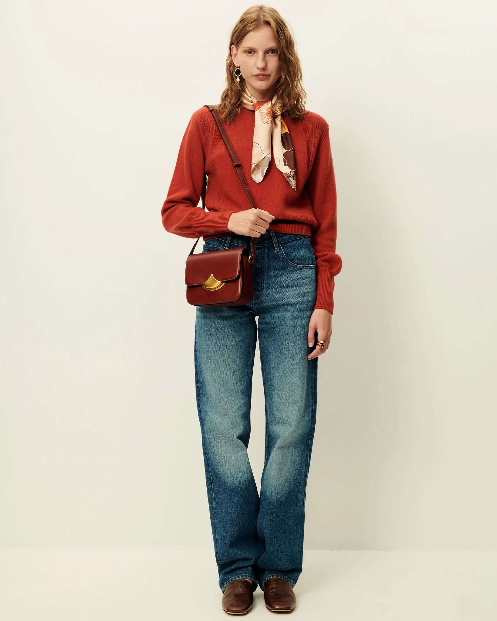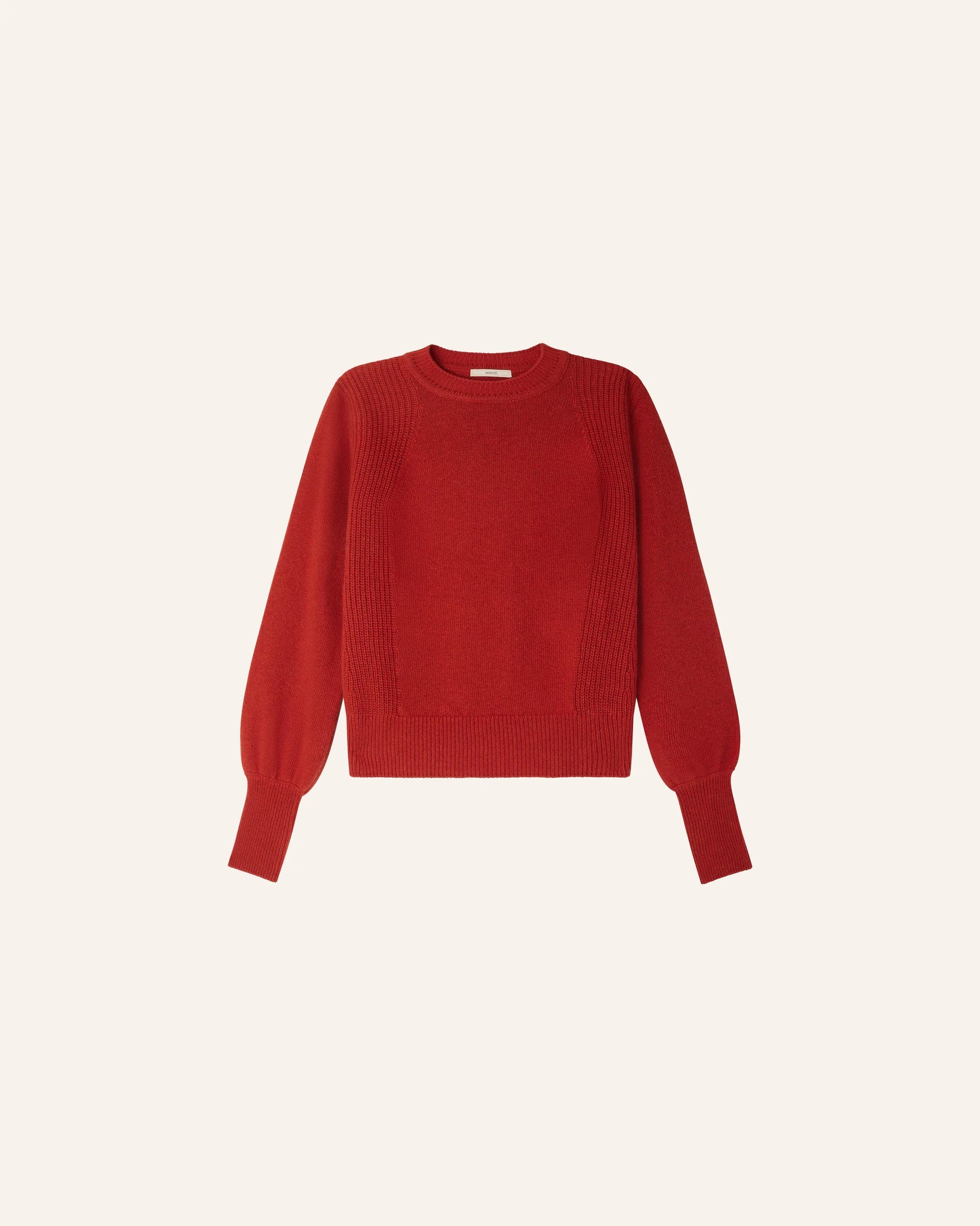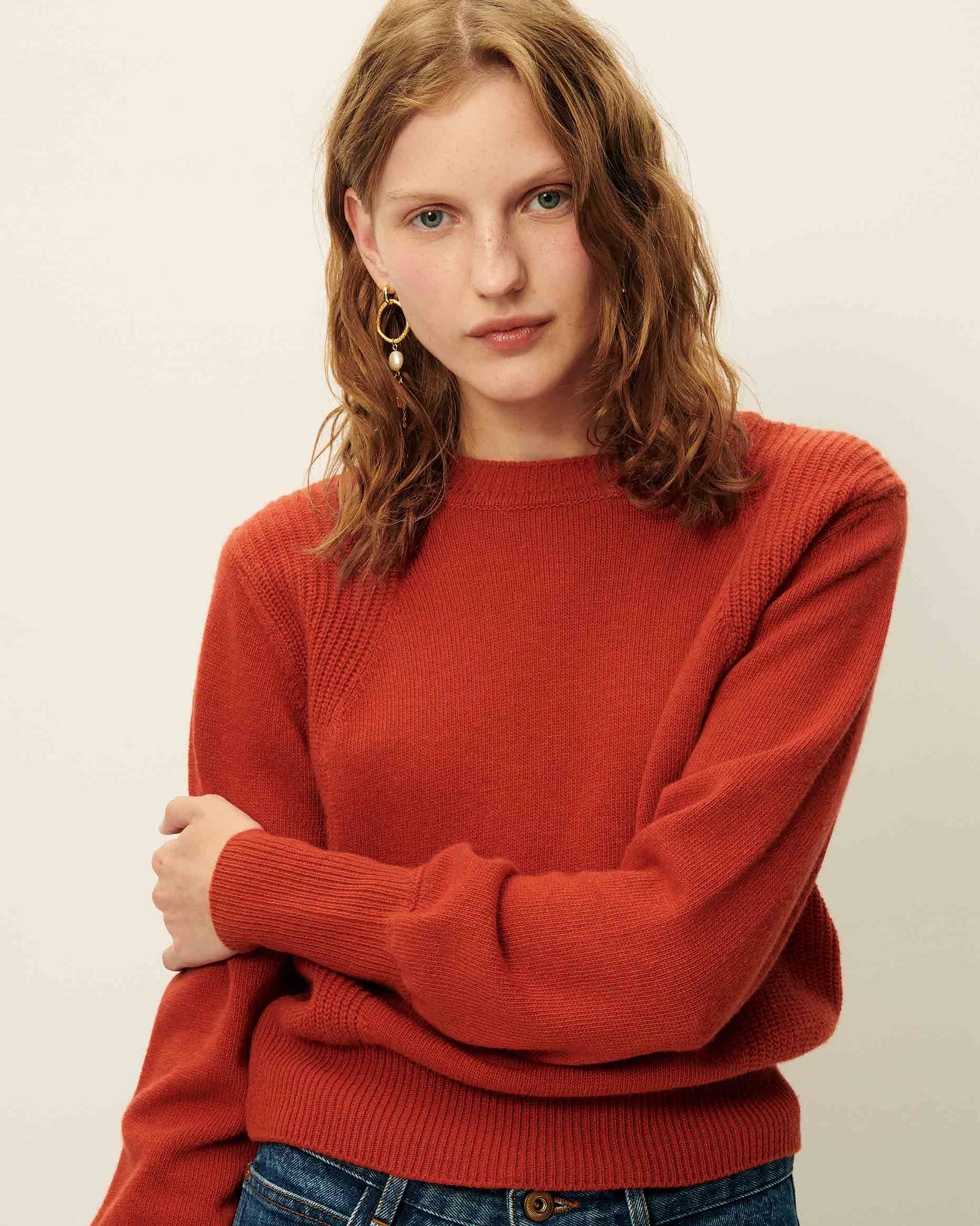 Maglione corto e aderente in maglia rasata con dettagli a mezza costina sul giromanica, lavorato a maglia in Italia. La lana utilizzata per realizzare questo prodotto è certificata per il monitoraggio e il controllo dall'allevamento alla filatura, garantendo il benessere degli animali e una qualità superiore. Scollo rotondo Maniche lunghe e ampie con polsini aderenti a costina Dettagli a costina sui lati