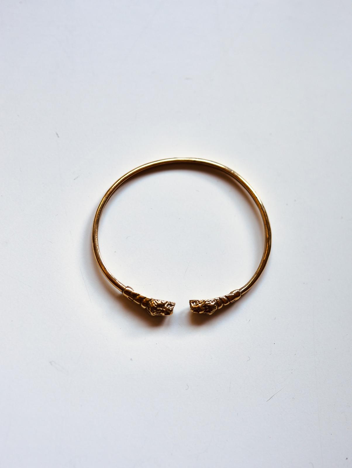 Bracciale aperto regolabile, in ottone naturale lavorato